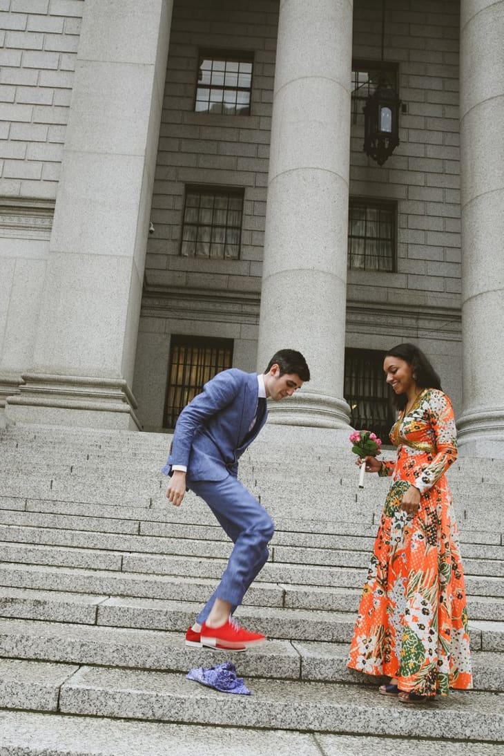 - Stick with tradition, if you’d like. If there are any cultural or religious traditions you want to do, do them! You can jump the broom right inside the courthouse, or break a glass on the steps of city hall.