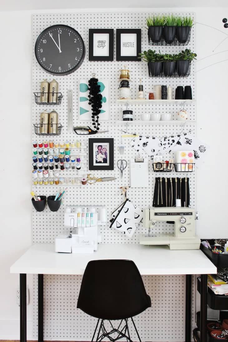 1. An ultra-organized black and white pegboard by Fabric Paper Glue is chic and user-friendly.
