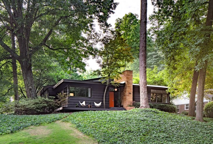 Designed by architect Thomas E. Garner and built in 1952, the Decatur home almost looks as if it should belong in Palm Springs, the capital of all things MCM. Inside, it’s been restored to its ‘50s glory, retaining original features like interior shutters, a Herman Miller sideboard, parquet floors, Cole & Son retro foil wallpaper, and a Lucite Scolari chandelier.