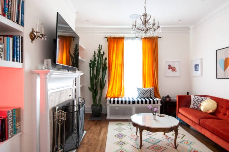 19. Pick out a rug that actually works with your space. “Your furniture should fit comfortably on the rug,” Sesser says. “If everything is hanging off the sides, you’ve gone too small. Measure your space and start with the rug first, then select your furniture. Don’t forget to consider door swings that may need to clear the rug or any corners that may create tripping hazards. Also, rug pads are key to keep everything in place!”