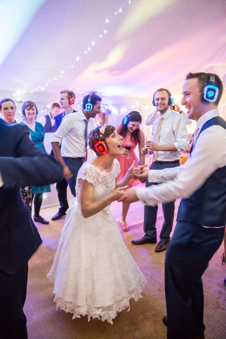 Keep the party going long after your venue’s noise cut off time by throwing a silent disco for your guests. Participants listen (and dance!) to music transmitted via wireless headphones, leaving the rest of the party to carry on their conversations without competing with the DJ. This couple, featured on Love My Dress, said it was one of their favorite parts of their wedding and looking at this photo, it’s easy to see why!