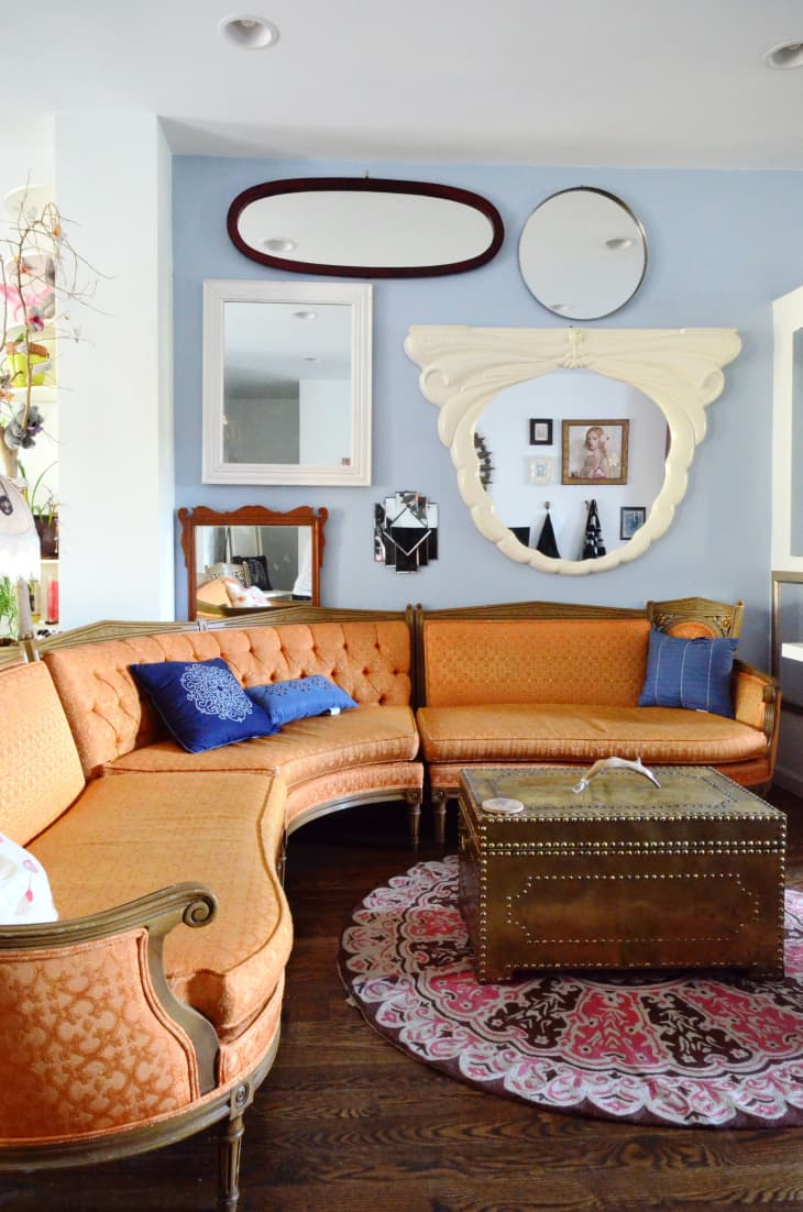 Instead of (or in addition to) a wall collage of art, use mirrors to expand the space, reflect light and make the space feel livelier. → 10 Ways To Use Mirrors To Make Your Space Look Larger.