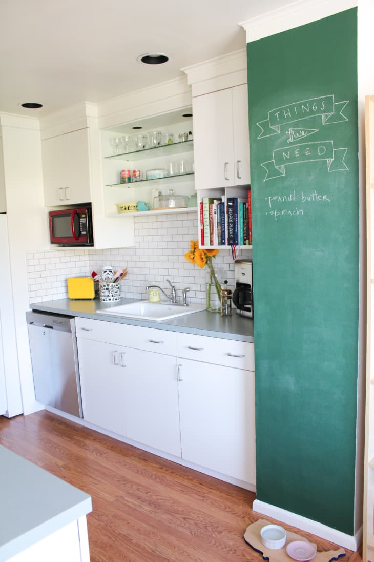 Groceries lists, the week’s menu, reminders and save-the-dates can all be writ large on a chalkboard paint wall for everyone in the house to see.