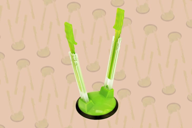 These are bag holders, and while their color and shape always make me think of extra-terrestrial arms, they’re designed to keep food storage bags effortlessly propped open for filling. As a bonus, they fold down almost flat for easy storage and have a round, slip-proof base. They’re my new best kitchen pals.