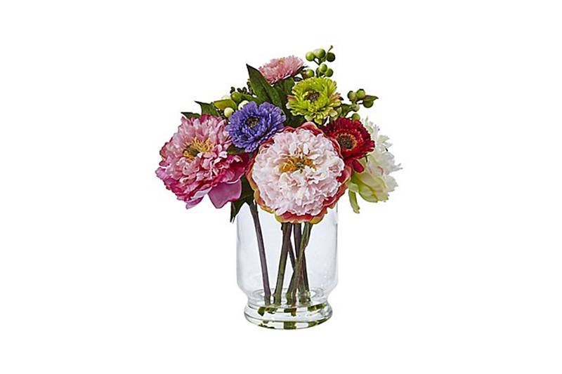 Nearly Natural Peony and Mum in Glass Vase 12″ Multi Color at Staples, $43.89 (Image credit: Staples)