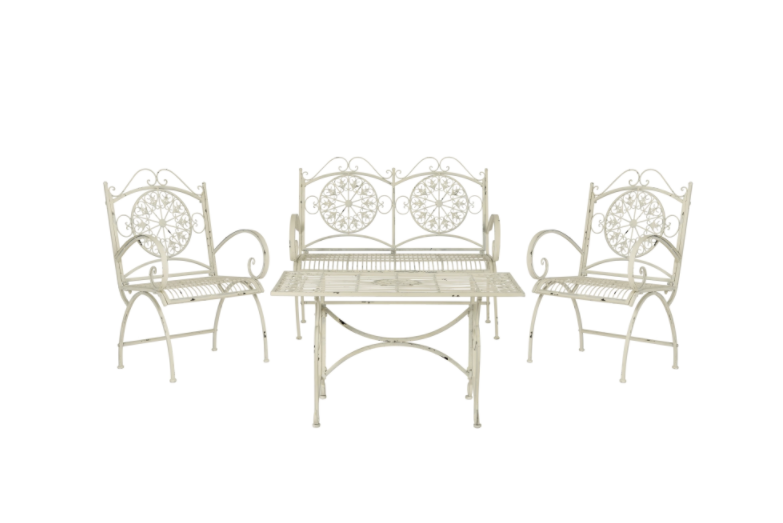 Safavieh Outdoor Living Rustic Sophie Antique White Iron Patio Set (4-piece) at Overstock, $449.98 (Image credit: Overstock)