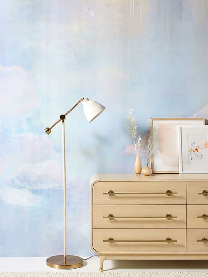 Camille Javal, a Melbourne, Australia-based multi-disciplinary artist and designer, created this muralistic wallpaper for Anthropologie with the goal being to bring an etherealness to any relaxation space. In her art, Javal explores how color can “stimulate productivity, imagination, and positive emotional well-being,” and focuses on creating happy, inspirational mural designs.