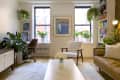 This couple sharing a small New York apartment were able to create a functional floor plan that has separate functional areas.