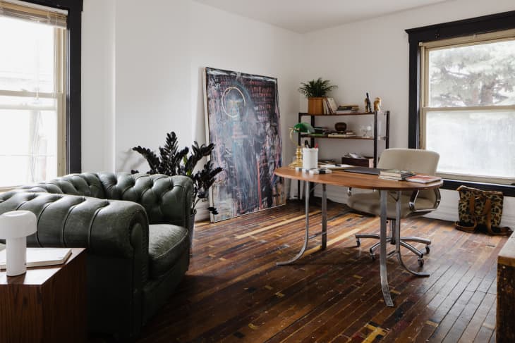 I love Bo and Kyle’s clever no-curtain-necessary window hack and I think I’d like to test it myself. Next up is finding a piece of artwork as beautiful as theirs. This isn’t the only gorgeous space in their house — visit the full home tour to see more.