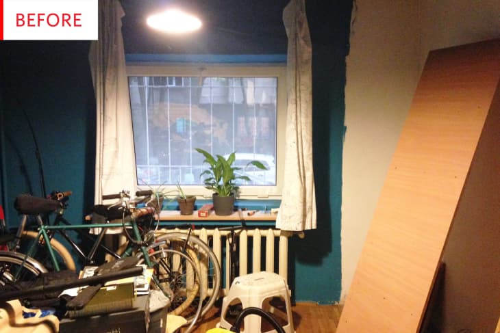 This guest room had beautiful wooden floors, a cool old radiator, and some pretty delicious blue paint, but it was gradually becoming “kind of a neglected spot.” This renovation-free redo transformed the room from an accidental storage space to basically a boutique hotel, complete with a commissioned mural.