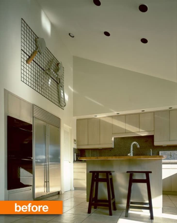 • The stainless steel Sub-Zero fridge was only a couple of years old and fit in with the new style planned for the renovation, so the homeowners decided to keep it.
