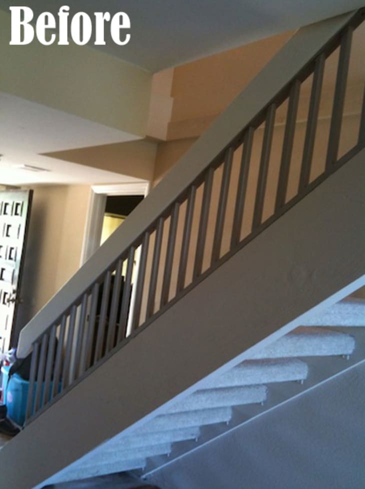 By removing the carpet and sanding and staining the steps, the new stairs are vastly improved. Of course, I just made that sound like it a was a simple process, right? Oh you know, they just removed the carpet and stained the steps, easy peasy la di da. As anyone who has ever undertaken a big house project knows, this project undoubtedly took every last ounce of the couple’s bucket of blood, sweat and tears! But in the end, it was totally worth it! They saved a chunk of change and ended up with gorgeous, open floating stairs. Check out the full process on their blog, Hand Make My Day: