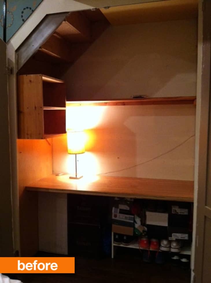 This couple wanted to create a space in their Upper West Side apartment dedicated to displaying and enjoying wines. While they didn’t have a lot of kitchen space, they did have this under-the-stairs closet, ripe for transformation.