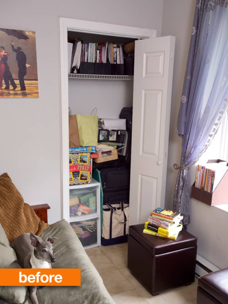 The challenge (and fun!) of small space living is finding the best use for every inch. Even though tiny apartments are usually short on closet space, a place to stash your suitcases is less useful if what you really need is an office. Melissa put her closet to work for her — for only $130!