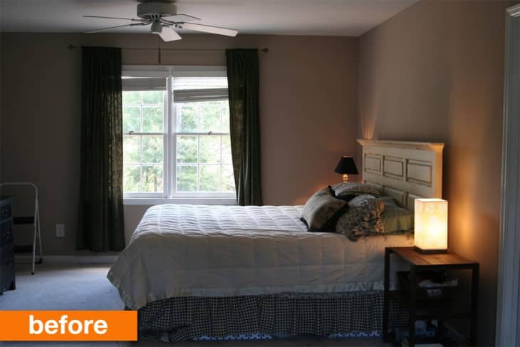 The before picture shows the room how it looked when we moved in, with all our furniture from our old house just sort of plopped down in the room. We still liked and were able to reuse most of the furniture (the headboard, bedside tables, and dresser), so we didn’t spend a lot of money in here, but the room still certainly has a completely different look now than it did when we started.