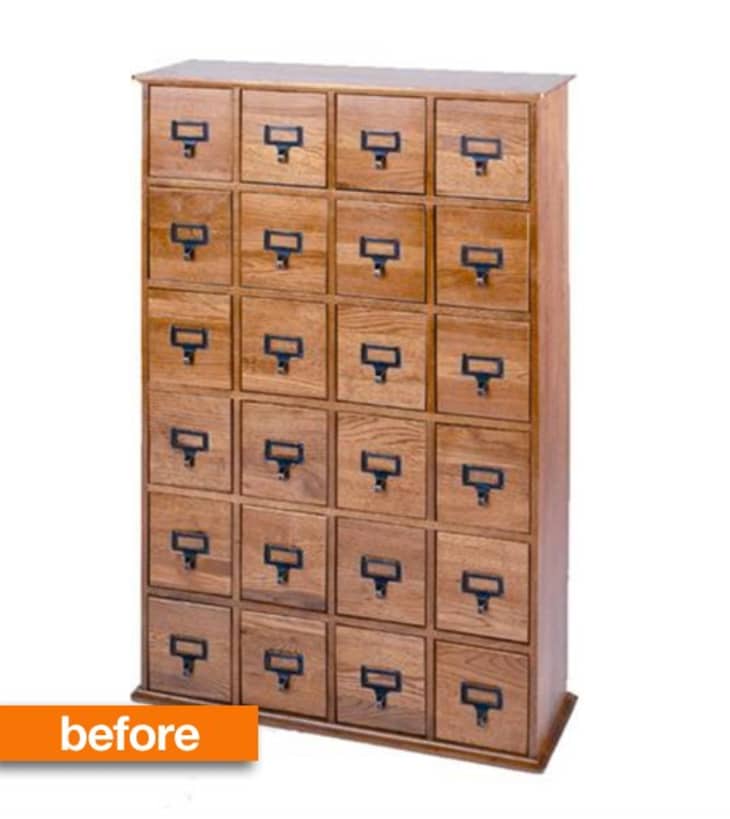 As all DIYers know, sometimes the flea market is just not your friend. Yari had visions of finding a vintage library file to buy and restore for her home office, but after months of searching, she realized it just wasn’t in the cards. So she bought this new but plain Jane chest and really put her own spin on it.