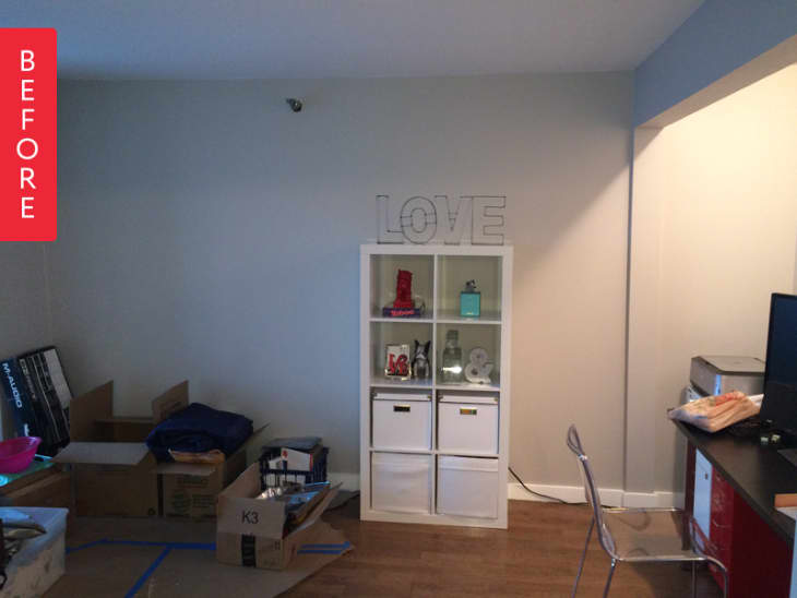 Nicole and Nate needed this room off of their Chicago kitchen to do it all: function as a home office, be comfortable enough to lounge in, and also be flexible enough to fit in the occasional overnight guest. Here’s how it looks now: