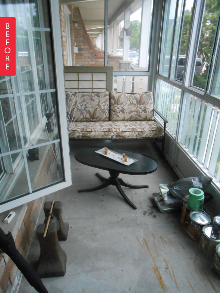Shawn had installed windows on his enclosed front porch, effectively creating a sunroom. But it still sat unused and became a magnet for old furniture, that is, until stylist Carlton Ellis created a cozy spot in which to relax, entertain, or sip morning coffee: