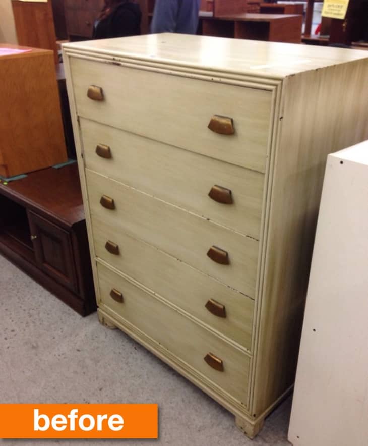 Our favorite before and after projects are the ones that are downright unrecognizable after being transformed, and this project certainly fits the bill! Diane and her husband came across this dresser for cheap at a thrift store and decided to make it look like a type of furniture Diane had always wanted — only more practical!