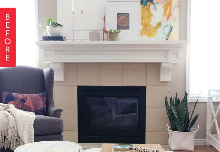 Krystal looked at her beige fireplace and saw a blank canvas. She got to work painting tiles to bring some pattern to her living room.