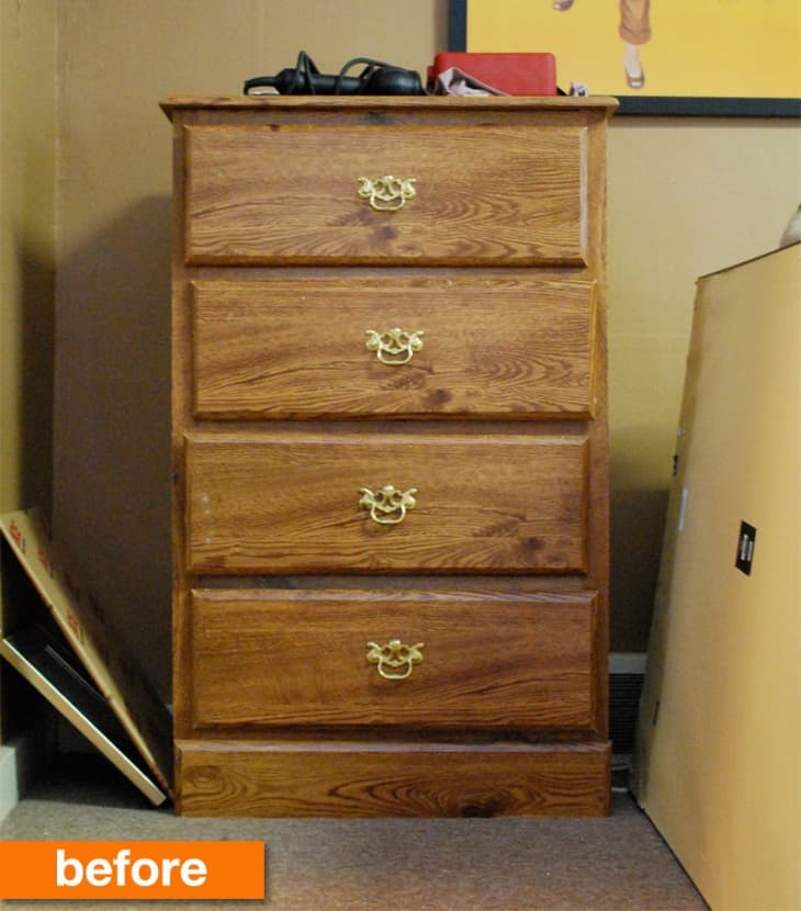 We bet plenty of folks would have passed up this heavy laminate dresser, even if found in the “free” section of Craigslist. But not Breanna. She saw some creative potential for this forgotten furniture piece, instead transforming it into attractive and useful storage for a friend’s kitchen!