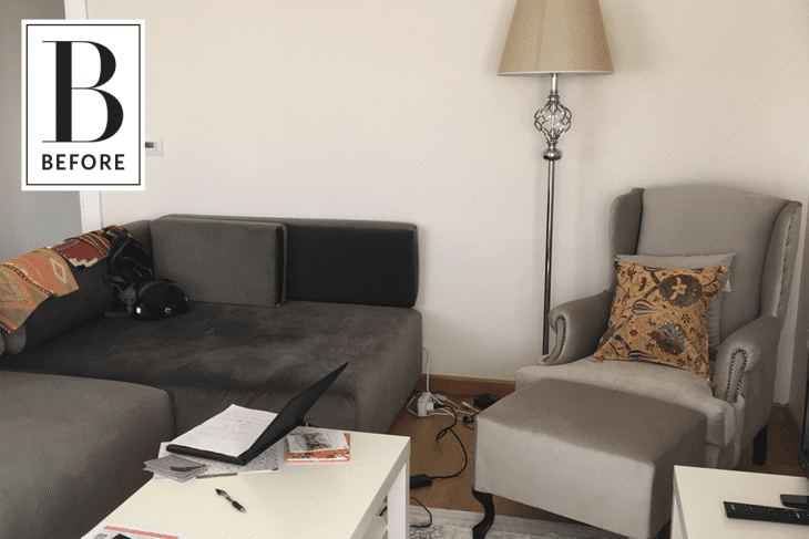 From Avery: My husband’s parents just moved to Istanbul, Turkey. They live on the 14th floor of an apartment building that overlooks the Marmara Sea, and their apartment was pre-furnished by their landlord. My husband’s mom, Sondra, made the incredibly smart decision to ask for neutral furnishings. This gave us a blank canvas to work with, which made decorating less of a challenge and more of an adventure! Their apartment was completely furnished, but lacked the coziness and personal nature of a home. We sourced items from IKEA, the Grand Bazaar in Istanbul, and their own home. Their living room was our main focus. It receives tons of natural light from the wall of windows that overlook the sea.