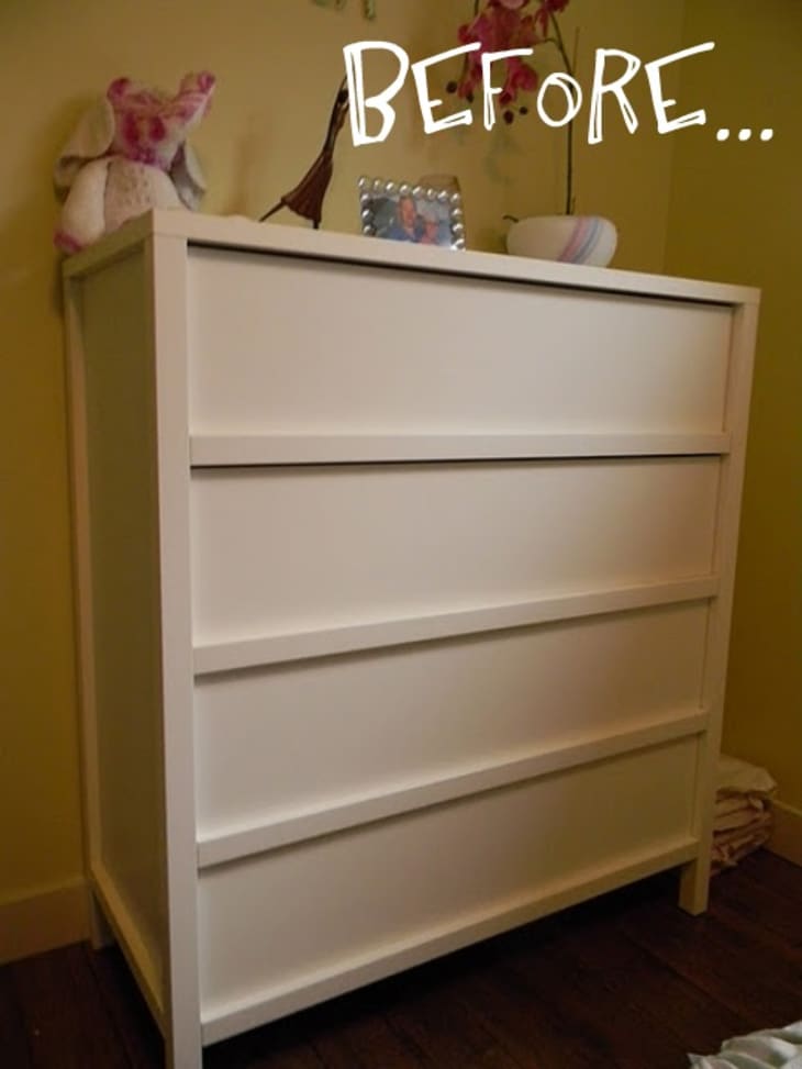 Carol of The Design Pages transformed this very plain Trondheim dresser using the magic of lightweight, fretwork panels and paint. It’s an easy way to add some luxe to IKEA pieces. O’verlays has created an entire line of designs to choose from. Check out their website for photos. For details and photos of how Carol pulled off this dramatic Before and After, run over to her blog The Design Pages.