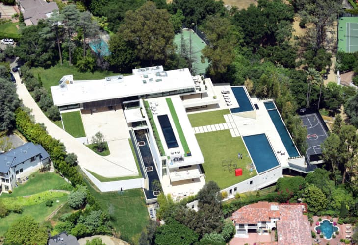 The eight-bedroom, 11-bathroom spread was designed by Irish architect Paul McClean, who designed at least three of the 10 priciest homes sold in L.A. last year. The six-structure compound totals 30,000 square feet with eight bedrooms, 11 bathrooms, four pools, a basketball court, a recording studio, a spa, staff quarters and limestone floors.