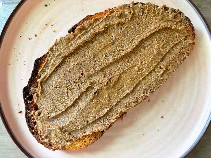 And the flavor is out-of-this-world: The espresso is prominent and tastes just like a freshly brewed shot. You can see little flecks of espresso throughout. It’s stunning paired with the vanilla, maple syrup, and hint of sea salt to round it all out. It’s sweet, salty, creamy, and just downright delicious. It totally lives up to its namesake and tastes just like a vanilla latte. It was seriously hard for me to put the jar down; I kept finding excuses to schmear it on everything or sneak another spoonful.