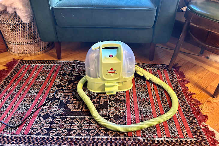 I’ve always wanted to try it out for myself, but have never had quite enough room to justify storing another single-use cleaning appliance, even if it is little. So when the launch of Bissell’s new Little Green Mini — an even smaller version! — came across my desk, I knew I had to try it.