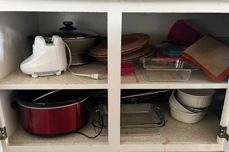 If you have an L-shaped kitchen counter, chances are you struggle with making use of the empty space that’s almost impossible to access in the corner of your cabinet. It’s tough to reach, thanks to the awkward bend, and it’s hard to see what’s in there. I’ve experimented with putting bigger, lesser-used appliances (like my slow cooker, air fryer, and Instant Pot) back there, but it’s annoying to have to take everything out every time I need one of these appliances.