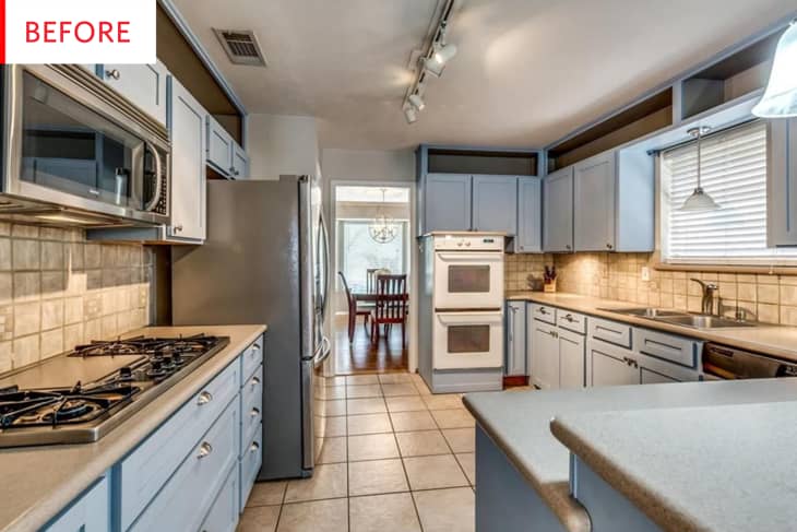 This is a nice big kitchen with tons of storage, lots of natural light, many ovens, and a cute baby blue and tan color scheme. However, it had some issues and some awkwardness that its owner was determined to rectify.