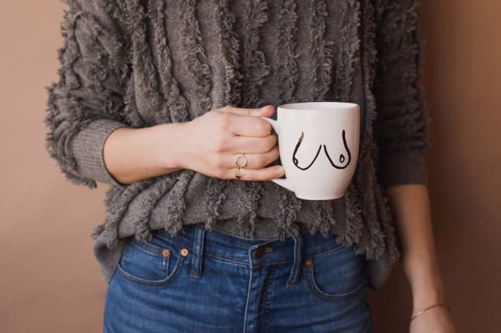 It may seem like this trend happened overnight, but I did some digging around, and it’s been a minute since boobs have become a decorative motif. The most OG company I could find in the decorative boob biz is San Francisco-based Gravel & Gold, a female-forward purveyor of handmade items, a custom line of clothing and home goods that’s actually been featured on AT before. “In 2011, when we first put our ‘Boobs’ print on fabric, we had no idea that it would become such a force and a core part of our overall business,” says Tomra Palmer of Gravel & Gold. “It was drawn by one of our founders, Cassie Mcgettigan, during a time when she was living communally in Bolinas, CA. Nudity was commonplace, so Cass was inspired to commemorate those bodies and others. This just sort of naturally morphed into the idea of covering breasts with breasts, playing with the idea of not hiding whatever it is ya got.”
