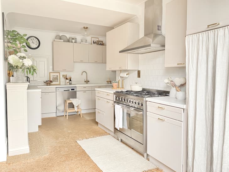 While giving us a tour of her Cambridgeshire, U.K., home in September, she described her style as “English country modern traditional” with some Scandinavian influences. This extended to her kitchen, where she was hoping to have a walk-in pantry before running into budget constraints. However, she quickly rallied and decided to reuse an old bookshelf as her pantry. She told Apartment Therapy, “I painted the bookshelf and purchased glass jars and labels on the internet and created a functional and attractive storage solution. My advice would be [to] think outside the box to create something if there’s something out of reach logistically or concerning budget.”