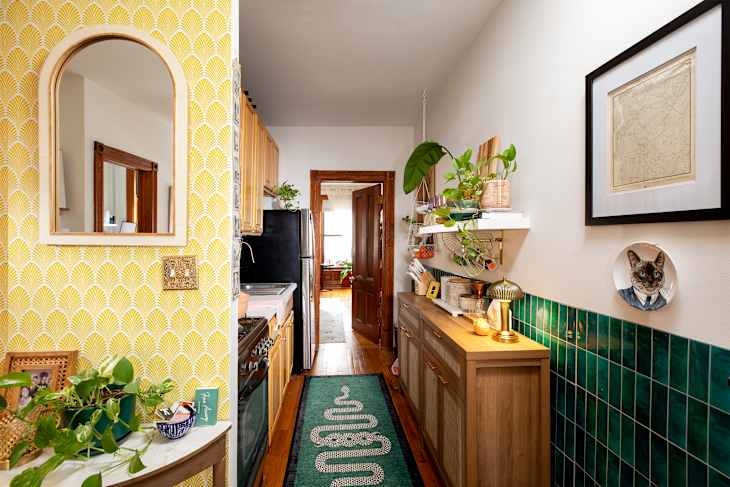 “Add function and character to smaller spaces with the help of upcycled and repurposed pieces,” Whitney Leigh Morris wrote in a recent Instagram caption. “For example, we repurposed this salvaged boot rack into stemware storage on the narrow and multitasking wall that connects our entry zone/dining area/kitchen.”