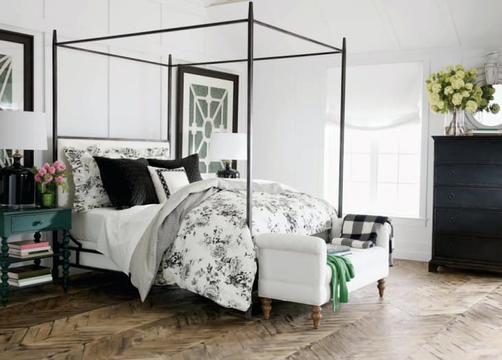 The master bedroom of CC + Mike makes me want to start over completely in my own bedroom. Their canopy bed is from West Elm (no longer available, though a similar version can be seen in the shopping gallery below).