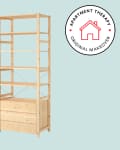 IKEA’s IVAR collection is a very versatile system, with different ways to configure storage, and made of unfinished wood that’s a virtual blank slate for paint. But, in a recent makeover project, the big question became: could it become the centerpiece of an inexpensive rental bathroom makeover? Erika’s bathroom suffered from a distinct lack of style, so I wanted to start with a great vanity in a fun color. One of my first thoughts, when on a strict budget, is usually IKEA.