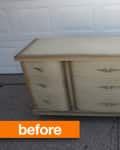 Before & After: Cristin’s Mod Podge Buffet MakeoverWhen Cristin and her husband found this dresser on the curb in their neighborhood, it quickly became apparent why no one had grabbed it first: it’s huge, heavy, and covered in dated white veneer. But with a little vision and a ton of Mod Podge, this beast became a buffet. From Cristin: Last summer, while hosting a garage sale at my house, my husband came home from work and told me there was a buffet table out to the road in our neighborhood.