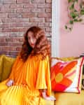 "My style is modern vintage, eclectic, maximalist, seriously whimsical, adventurous, nostalgic, queer, unapologetically colorful and femme, bold, energetic, cozy, life affirming, unconventional, and wholeheartedly personal," explains Sarah Hartley.