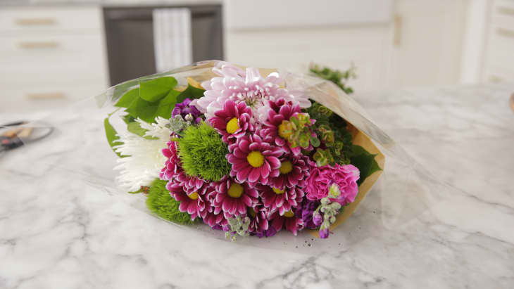 Supermarket bouquets are notorious for being a hodgepodge of flowers that don’t necessarily look great together. But, even if you’re not a pro, it’s actually super easy to turn one inexpensive bunch into a series of beautiful arrangements. So skip the extra trip to the florist shop, and instead grab some cheap blooms while you do the rest of your grocery shopping.