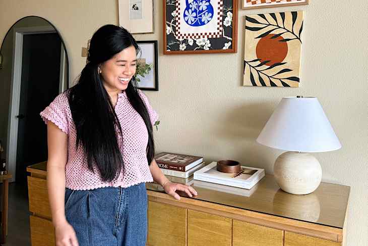 If you’re a fan of watching satisfying, seemingly instant DIY transformations, you’ve probably seen one of Tina Le Mac’s (@tinalemac) videos while scrolling TikTok or Instagram. With 81.7K followers on TikTok, 259K on Instagram, and 273K on YouTube, she’s known for turning simple IKEA aisle finds (and unassuming furniture pieces — think: wooden carts, frames, trays, and shelves) into one-of-a-kind pieces for her home or dupes from more expensive stores.