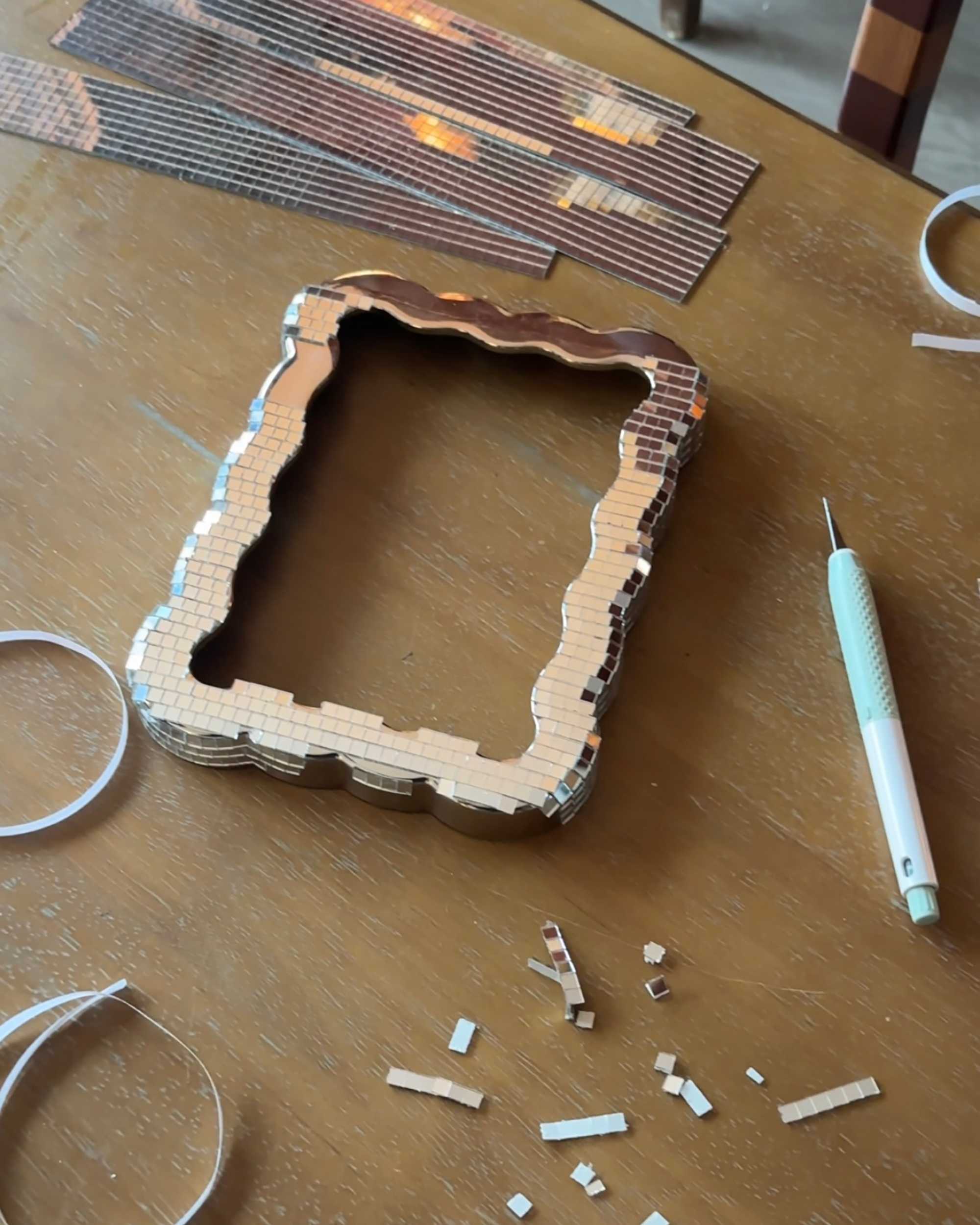 “The frame was already chrome, making it the perfect base to add the mirror tiles without having to spray-paint,” Le Mac says. She didn’t have to spend a lot for this transformation: The frame cost $7, the mirror cost $4, and the stickers cost $12, with plenty left over for future projects.