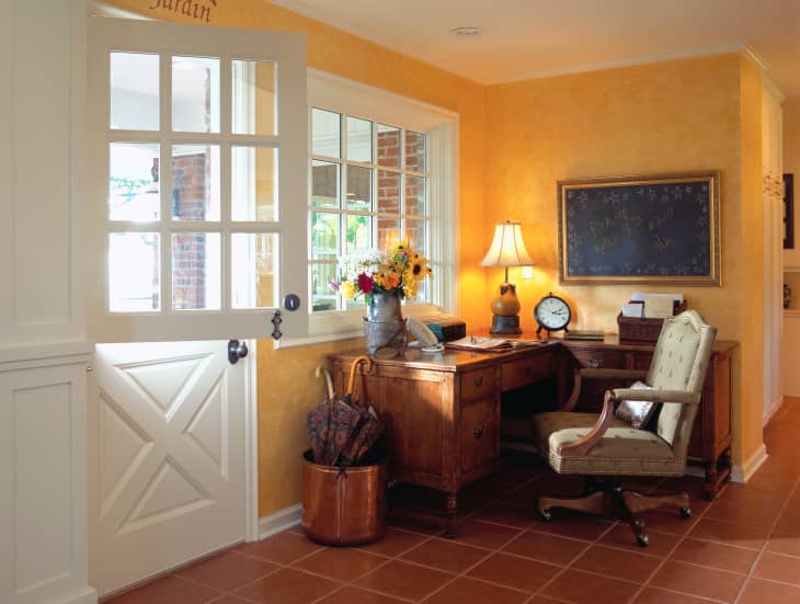 This two-toned Dutch door offers another style choice — painting the inside and outside of the door a different color. If you want a look that really stands out, you might even consider painting the top and bottom half different colors.