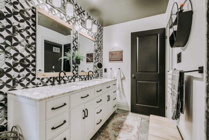 Kelsey Mansingh and her husband, Ryan, the couple behind Newbuild Newlyweds, say peel-and-stick wallpaper is always harder than it seems, yet they did it five times in their last home. So, what’s the issue? “Most homes do not have totally square/even walls, and that makes applying the wallpaper/lining it up perfectly straight nearly impossible,” Mansingh says. However, when it comes to bang for your buck, it’s worth it. “It always ends up turning out well, and it makes such an impact for minimal cost, but the process is almost always a nightmare!”