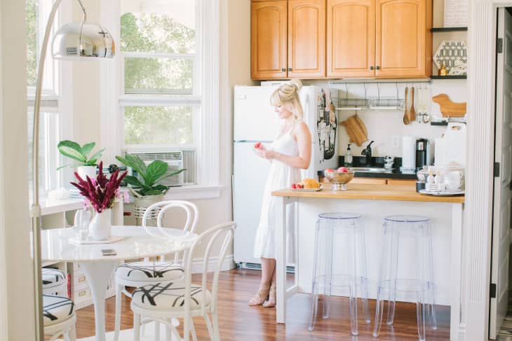 From pot racks to under-cabinet hooks, there’s really no such thing as getting too detail-oriented when it comes to organizing a small rental kitchen. That’s because if you’re renting, you probably didn’t design the kitchen to fit your cooking needs. But by investing in small organizational containers and tools, like stand-alone shelves, hooks, tension rods, and pot racks, you open up the possibility for customization of a rental…and you create much more function.