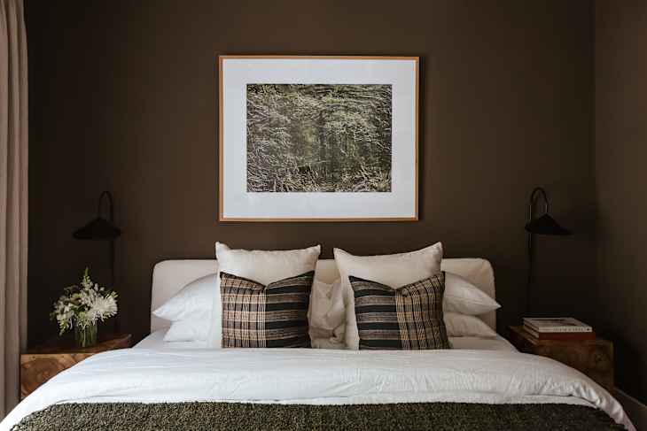 The key to pulling off this DIY is making sure the headboard covers the full length of an entire wall, so choose one that’s on the shorter side and not obstructed by windows. Ultimately, the finished product looks so high-end, gives off the illusion of a much larger space, and is easily customizable with your dimensions and choice of fabric. Plus, you can take a cue from the bedroom pictured above and experiment with headboard shapes or incorporate floating nightstands into the setup.