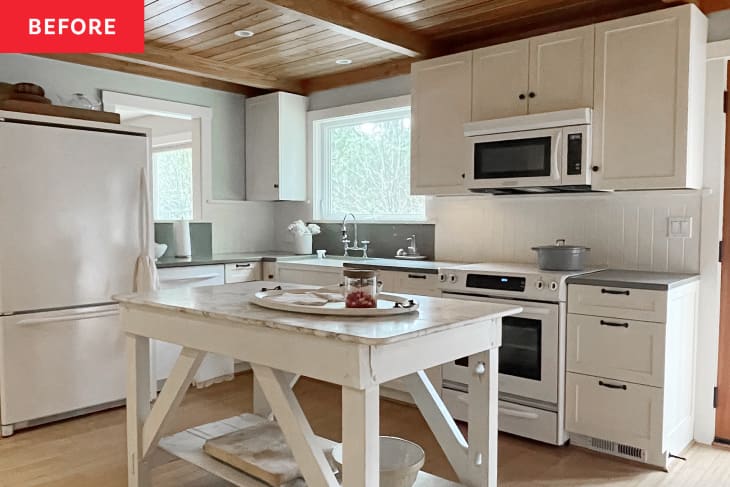 “So many elements just need a new color or a hardware tweak, but the thing itself is workable. The countertops were fine! The backsplash was fine! What was bringing this kitchen down was the dated appliances, the subdued color palette, and the less functional island and lighting. So that’s what we focused on.”