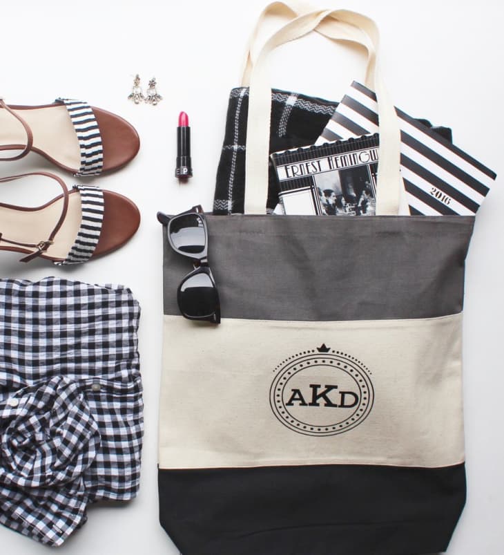 We know it sounds a bit old school but monogramming your stuff actually looks pretty swanky. These days you can head online and monogram just about anything your heart desires (like the $30 tote bag above) or drop by your local tailor to embroider up a custom look in no time.