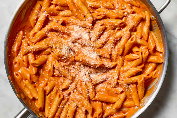 If you prefer a lighter dish, the noodles are just as friendly with a thin marinara (jarred is more-than-just-fine) or clingy pesto. I recommend serving the noodles hot and saucy rather than as a chilled pasta salad — they do get slightly gummier as they cool.