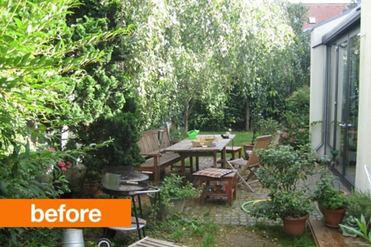 It is a nice trick to be able to create patina in a new garden. Typically furniture and accessories create any semblance of a time honored feeling in a young garden. The ‘after’ pictures in this garden are only 2 years after the place was built, but I think the tree and the paving detail both lend this garden a permanence that new gardens often tend to lack. The paving that combines concrete with cobbles in a haphazard way, makes the garden appear to have a more layered and built over time appearance. I am a firm believer that the best gardens are places that tell stories and aren’t too perfect.